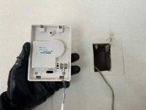 埋め込みで隠されている既存配線を流用して、新しい機械を取り付けします。